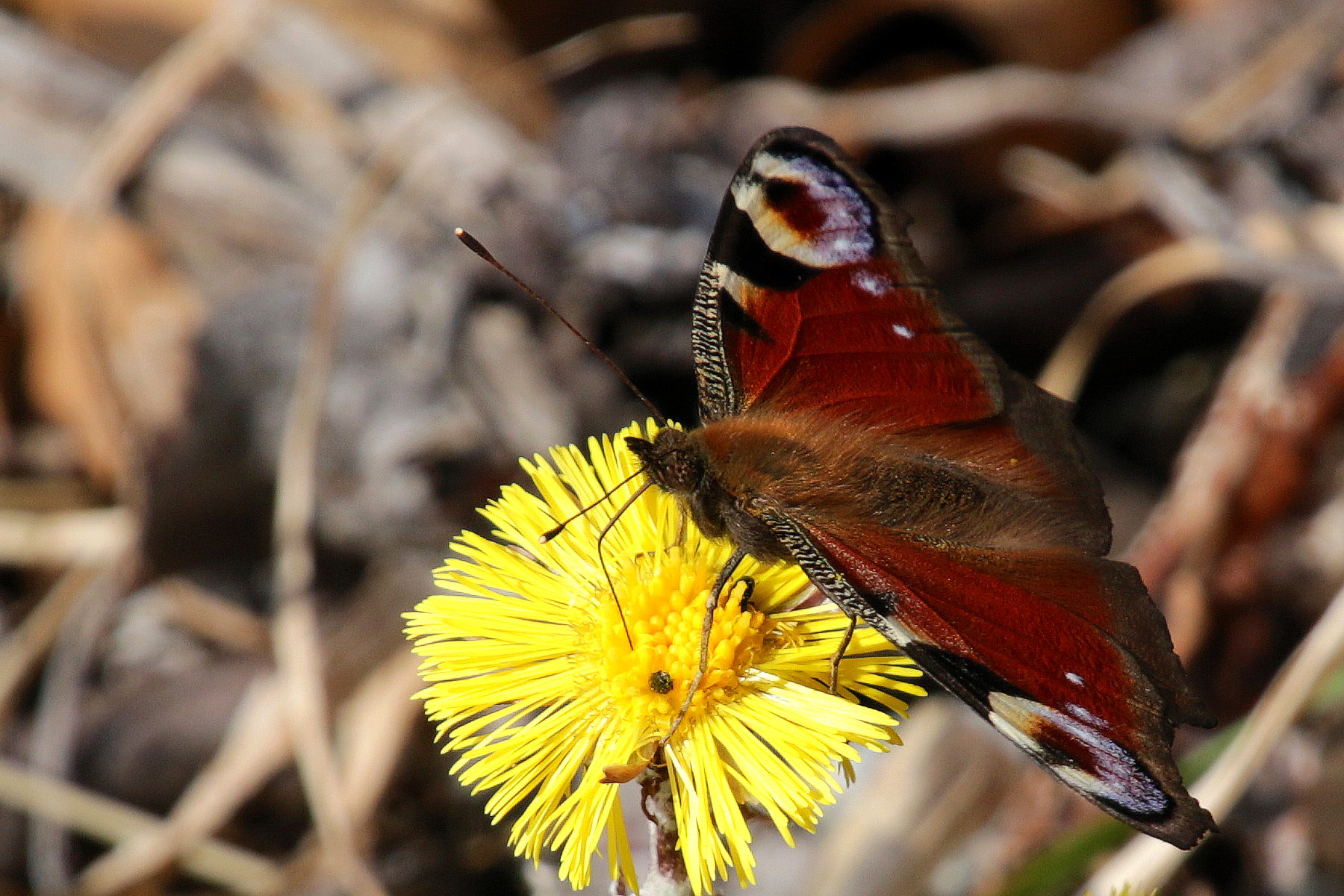 Tagpfauenauge (Aglais io) / Huflattich