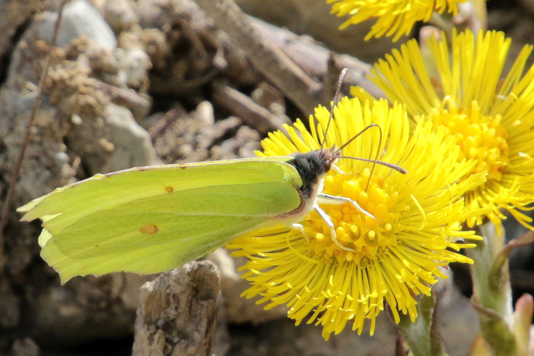 Zitronenfalter (Gonepteryx rhamni) / Huflattich