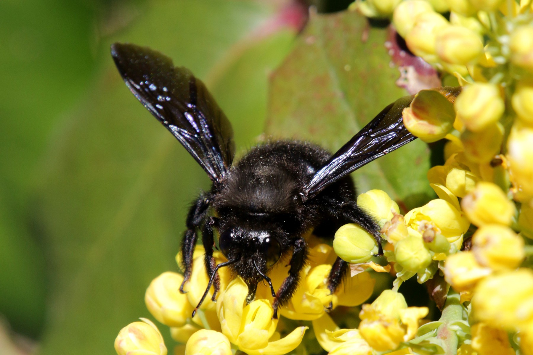 Blauschwarze Holzbiene / Gewöhnliche Mahonie